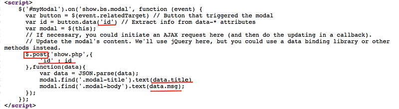 Now check the source code and you will notice something seems to be important in the end of the source code and i understand from it that it take the id of the user and depend on it’s value, it return 2 variables: the title and msg as you can see here