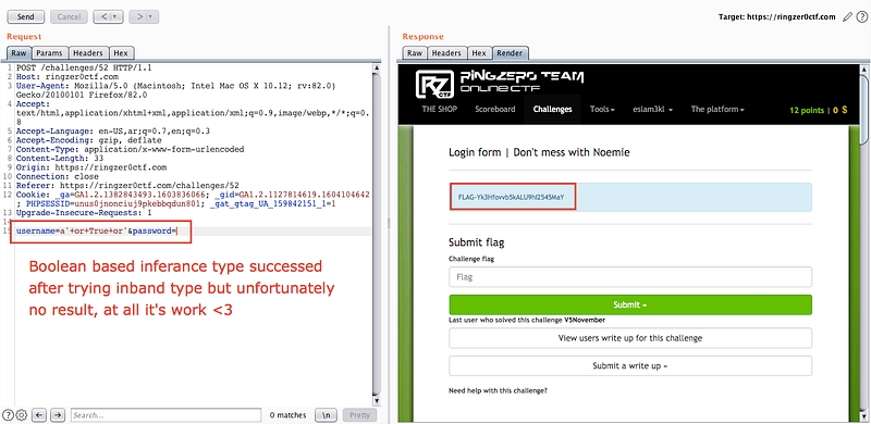 We started our testing in first type Inband but unfortunately no error message appears after inserting payloads and i trying to use union select but also no result. So the choice now is to try to boolean based by inserting true or false statements to the backend and check the response
