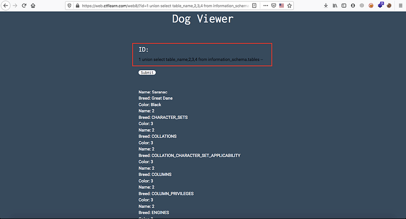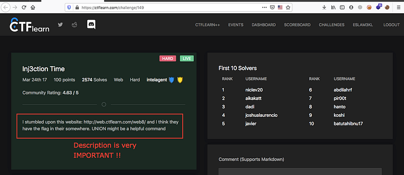 Inj3ction Time writeup from CTFlearn — SQL injection