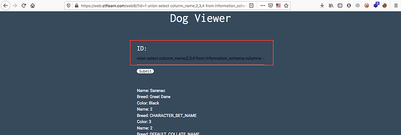 So we now know that the vulnerable columns is 1,2 and 3, we will start to print the database info in this columns like
