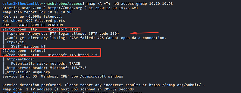 nmap -A -T4 -oG access.gnmap 10.10.10.98