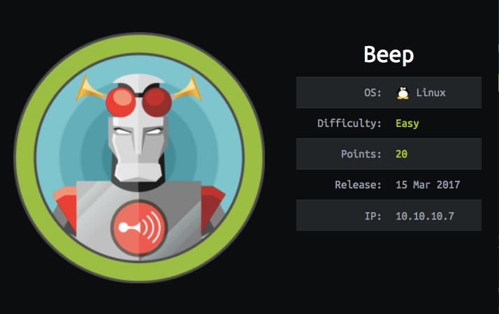 Hey Everyone! Here we come back with one of HackTheBox machines āBeepā. Before we get started, letās see machineās info