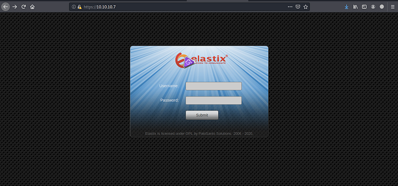 After opening 10.10.10.7 it redirects us to https://10.10.10.7 and now we have a login portal as you can see here