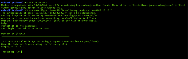 ssh root@10.10.10.7 or ssh 10.10.10.7 but at the first, Iāve faced a problem with ssh itself as you can see here and after some search, Iāve found the solution here
