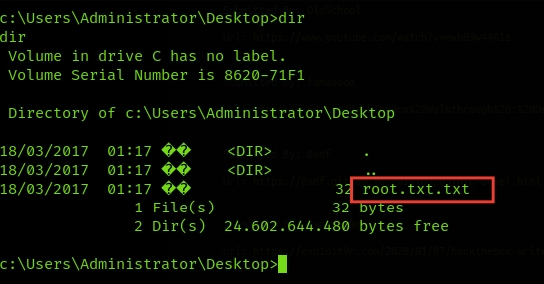Letâs search for the flag files in the c:\Users\Administrator\Desktop