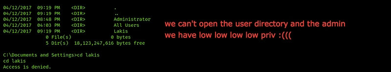 Unfortunately, we have user access or privileges only, so letâs search for user.txt