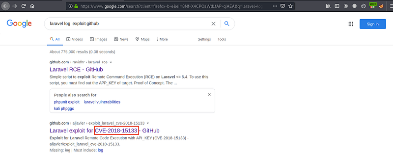 After searching for laravel log exploit github I’ve found this CVE-2018–15133 “RCE with API_KEY”