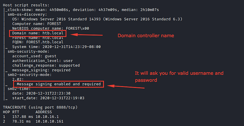 Figure that the domain controller’s name is htb.local and smb server is secure at this state because it will ask you for valid username and password if you try to list its directories or login to it as anonymous user.
