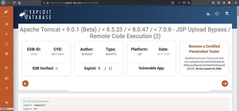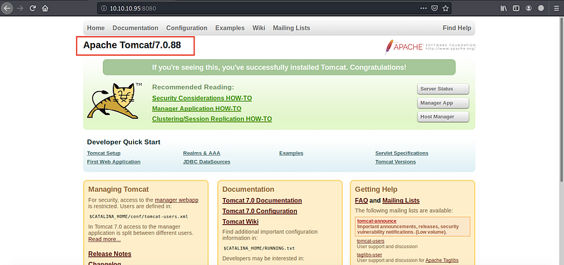 I’ve used exploit-db,rapid7 and searchsploit to search for CVE’s related to these keywords (tomcat / coyote / tomcat 7.0.88) and the results are recommending the same CVE