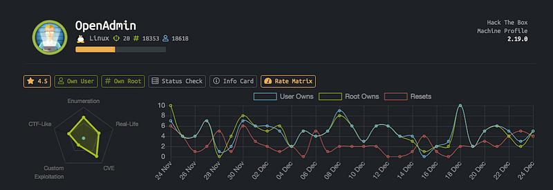 Here we come back again with one of HackTheBox machines ‘OpenAdmin’ which seems like all categories CTF, real life, etc so let’s take a look at its info