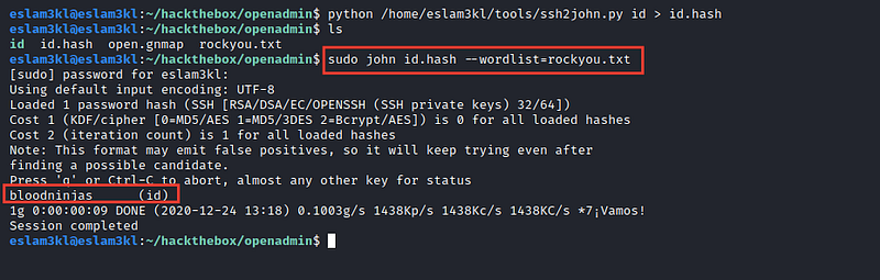 python ssh2john enc_key > rsa.hash → to generate john hash