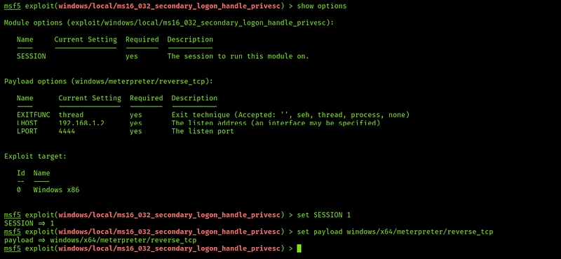 With all available exploitation with this machine, we will use one which will help us in the escalation process ms16-032