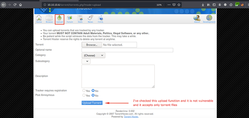 I’ve checked it in more than one way, but it’s not vulnerable, and it accepts only .torrent files.