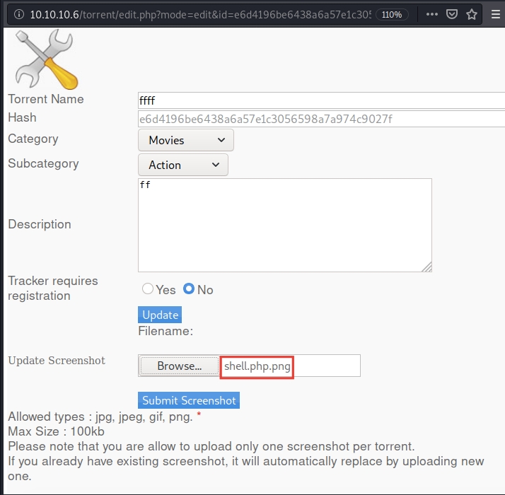 After uploading any test torrent file, I’ve found that I can upload an image as a screenshot related to the torrent file.
