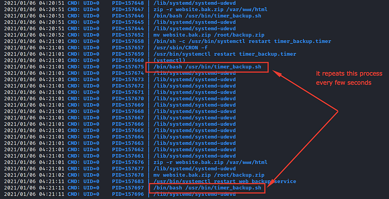 I’ve noticed that there’s a process that executed every few seconds as you can see and after accessing the file /usr/bin/timer_backup.sh