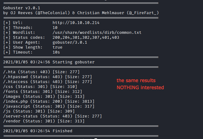 gobuster dir -u 10.10.10.214 -w /path/to/wordlist -l
