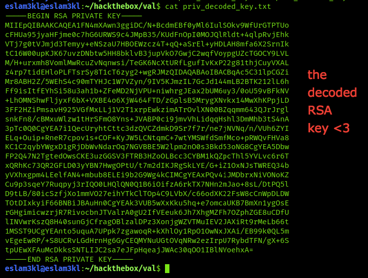 Okay good, I think it’s the password that we will need, let’s decode the RSA Key