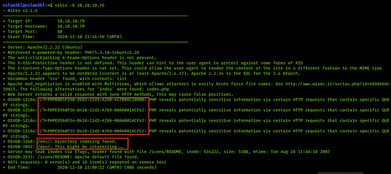 As you can, we have /dev the directory is available and information disclosure about the PHP & Server through these parameters, but it’s not important for us, let’s discover the /dev