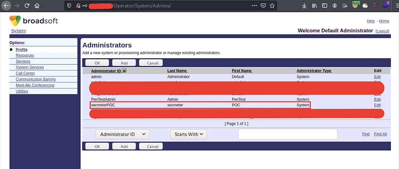 If you tried to view system users, we have 2 users: Admin and PentestAdmin. My user is PentestAdmin which has low privileges, reads his data only. User Admin has full control of the system