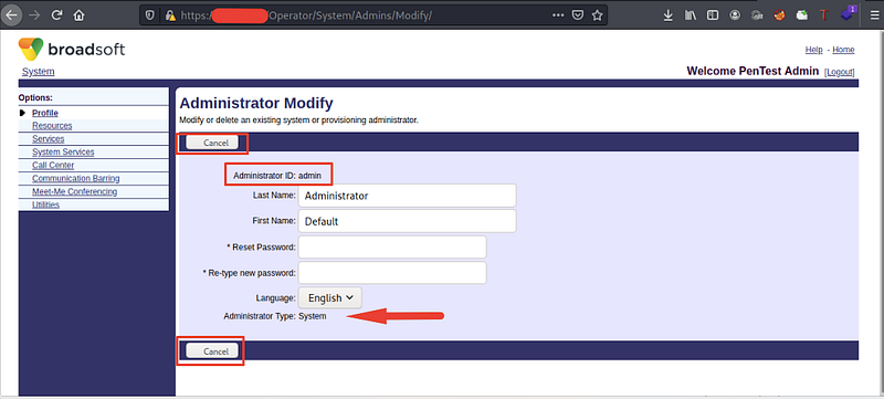 If you tried to view system users, we have 2 users: Admin and PentestAdmin. My user is PentestAdmin which has low privileges, reads his data only. User Admin has full control of the system