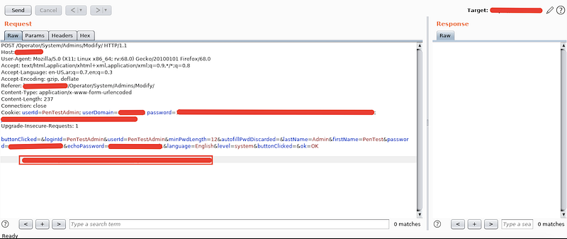 I entered a new password and intercepted the request to know what’s the request parameters. I’ve found that we have firstname, lastname and loginid required parameters because I tried to delete loginid but unfortunately! The request failed